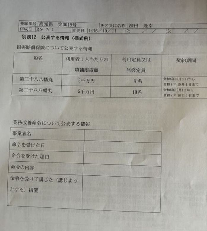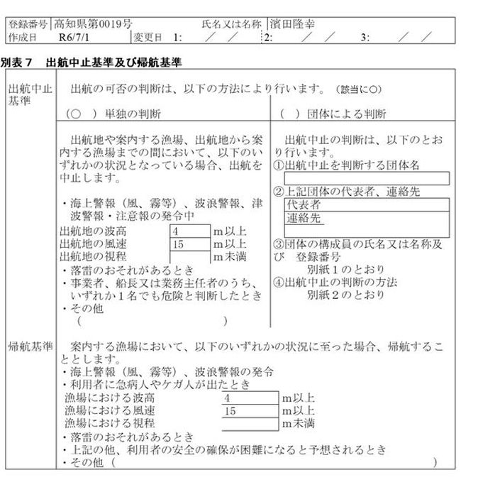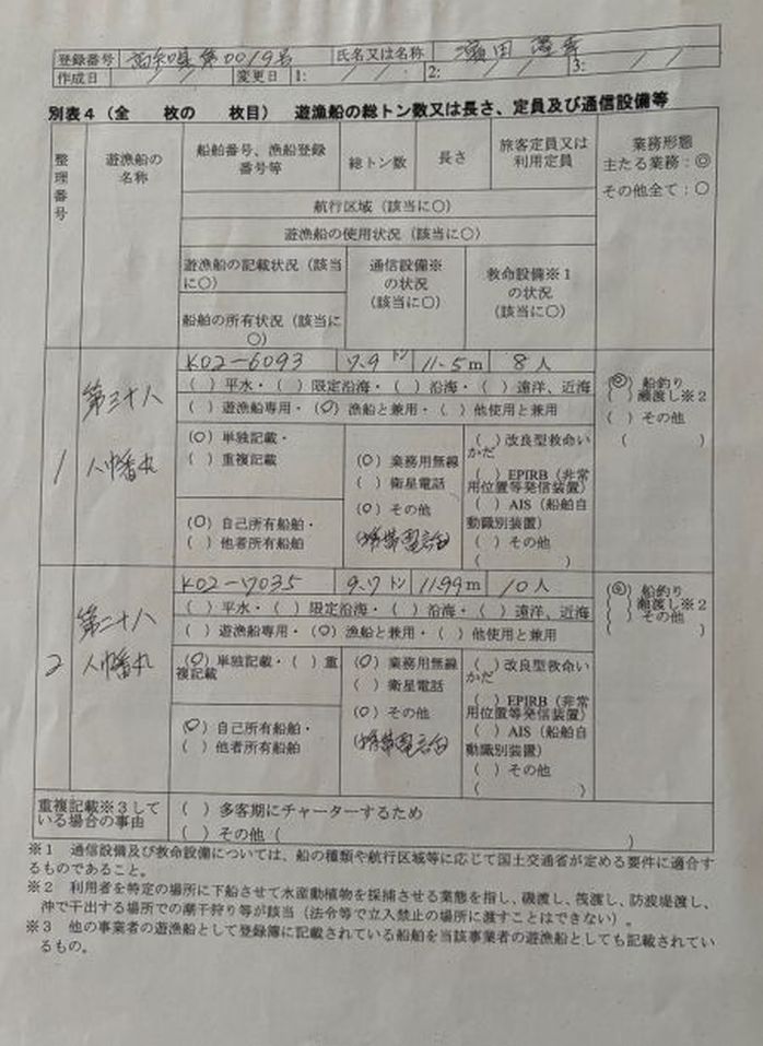 「遊漁船業の適正化に関する法律」による